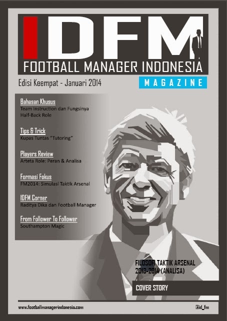 Di edisi ke empat yang rilis tanggal 4 Januari 2014 ini adalah edisi pertama di tahun 2014 sekaligus kado buat FM lovers yang merayakan natal dan tahun baru. Edisi kali ini menggunakan wajah Arsene Wengger sebagai cover, mengapa ? karena di dalam pdf ini salah satunya akan membahas Filosofi Taktik Arsenal, Simulasi Taktik Arsenal, peran Role Arteta yang terasa Arsenal banget yang pasti kamu perlu baca, selain itu ada bahasaan lain nya seperti: