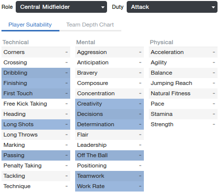 Central Midfielder (CM) mempunyai kemampuan teknis untuk bermain menyerang, support bahkan bertahan. mempunyai visi untuk mengarahkan permainan dan berpindah peran berkali kali.