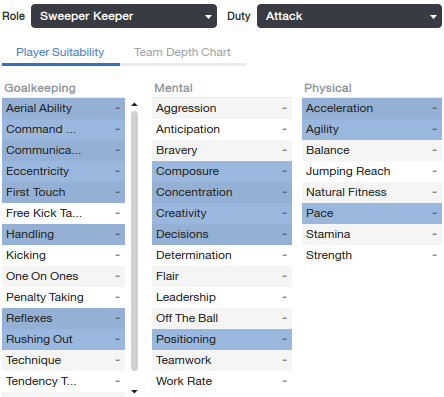 Sweeper Keeper (SK) akan memainkan dua peran, sebagai GK biasa tetapi juga sebagai seorang Sweeper.