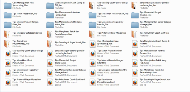 Namun masalah tak usai disini.Seperti yang saya jelaskan sebelumnya,’fasilitas’ PC saya yang masih dikatakan ketinggalan zaman membuat saya kesulitan mengembangkan ilmu managerial saya meski telah didukung fasilitas sekolah + ditemukan forum-forum resmi FM.Otak saya pun dipaksa bekerja 2x lebih keras untuk menemukan solusinya.Pepatah yang mengatakan “semua tidak ada yang tidak mungkin disepakbola” ,selalu saya tanamkan di dalam hati saya.Dan benar saja,sejurus kemudian jalan keluar pun terlihat.Dibarengi dengan tekad yang bulat,ucapan “nawaitu” sebagai niat untuk menjadi manager handal,saya mencoba menyimpan beberapa artikel FM yang saya temui disekolah.Save Page As,itulah trik yang saya lakukan.Dengan melakukan save page as artikel,saya pun dapat membacanya lagi dirumah sekaligus menyimpannya.Dan pada akhirnya terbentuklah sebuah guide FM offline mini yang akan menjadi ‘guru’ saya di rumah