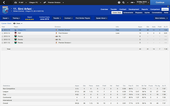 Di musim ini, saya gagal menjuarai Piala Super setelah kalah dari Persepam Madura United. Namun, saya berhasil promosi ke Indonesia Super League untuk musim depan. Prestasi luar biasa, dalam tiga tahun saya berhasil membawa Cilegon FC ke kasta tertinggi dan kompetisi Asia.