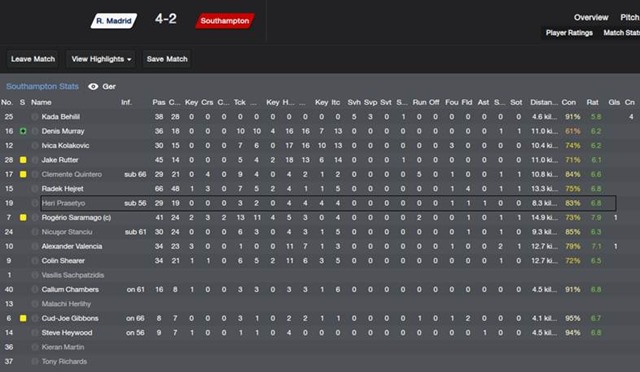 W: Tim Real Madrid anda berhadapan dengan Southampton yang diperkuat Heri Prasetyo saat partai final UCL 2027 lalu, bagaimana menurut anda penampilannya?