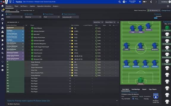 trik sy kalo lg nyangkul (baca : manajerin) rada detil,sy teliti smua stat pemainnya dulu dimana point plus & minusnya, btw ada hal yg ga enak dr klub ini,yaitu gada budget transfer, so utk sementara sy gabsa deh blanja pemain. untuk formasi sendiri sy seneng banget model attacking,krn menurut sy attacking is the best defence.huahahaha… formasi sy di PS Batam