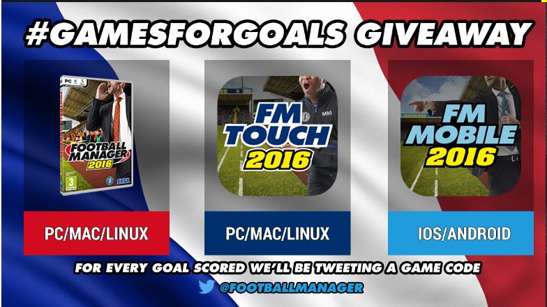 game yang dibagikan sudah tentu adalah Franchise FM baik FM16 untuk PC/Mac, FM Touch 2016, maupun FM Mobile 2016 ! buruuan, follow @footballmanager dan semoga kamu beruntung di #gamesforgoals giveawaynya.