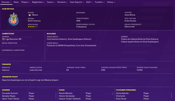 Yang uniknya dari Guadalajara, mereka punya kebijakan transfer yaitu hanya pemain Meksiko yang bisa bermain di klub ini. Hal ini membuat skuad mereka dipenuhi banyak pemain home grown.