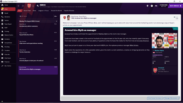 Demikian panduan cara melakukan personalisasi karakter pada Press Officer dan Player Liaison Officer di gim Football Manager. Perubahan data yang dilakukan tidak akan berdampak pada Save yang sudah dimainkan. Oleh sebab itu, para manager harus memulai kembali (New Save) mode karir (Career) agar perubahan yang dilakukan dapat muncul di gim Football Manager. Mari kita membuat New Save seperti tampilan di bawah ini:
