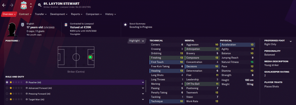 Layton Stewart merupakan pemain akademi dari klub ternama, Liverpool. Di musim lalu dirinya mencetak 24 gol dalam 24 pertandingan Premier League U18.