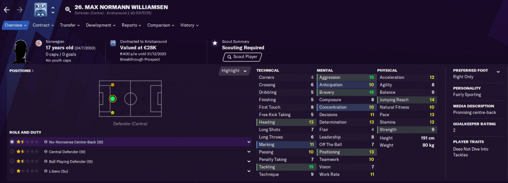 Max Normann Williamsen (17) – Kristiansund 2, €28 ribu