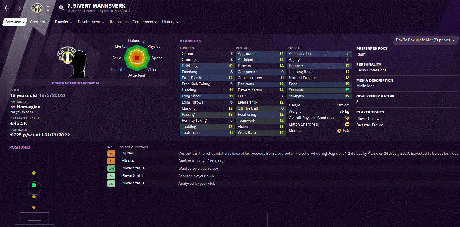 Di dunia nyata Sivert Mannsverk mencuat di liga Norwegia pada tahun 2020 kemarin. Gelandang Box-To-Box ini mampu mencatat diri di papan skor dengan 5 gol dan 5 asis dari 43 pertandingan.