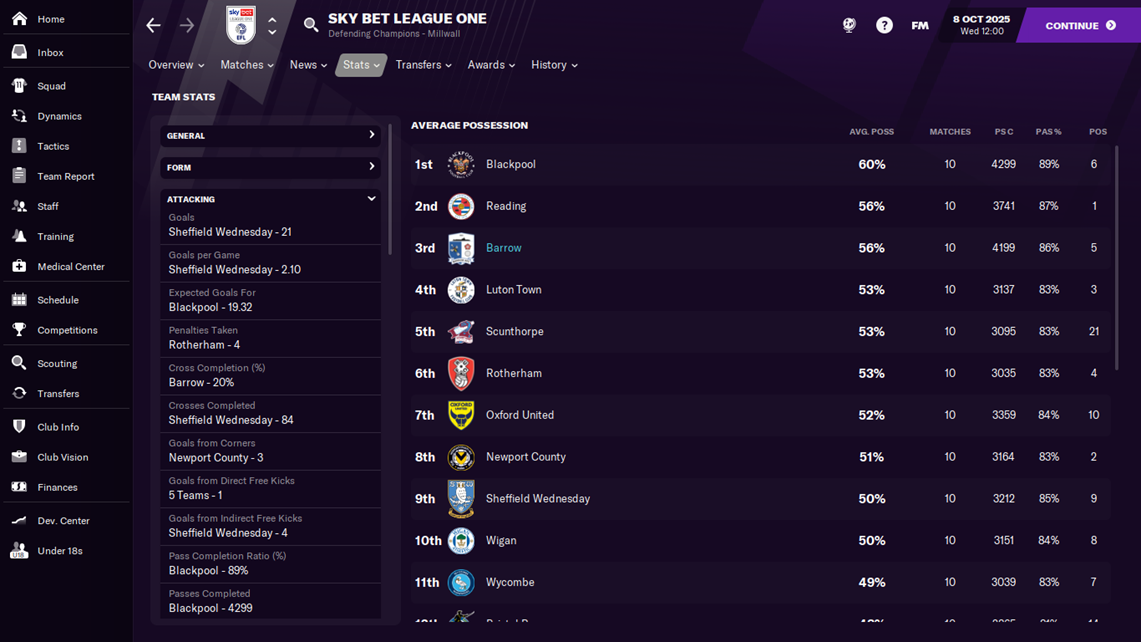 Bagi saya, ini merupakan tolak ukur keberhasilan target pertama saya, di samping memang secara statistic Barrow cukup mendominasi possession hampir di setiap musimnya.