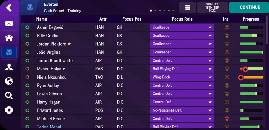 Dan di sini Anda juga bisa berfokus untuk mengatur atribut mana yang harus dilatih terhadap pemain Anda di skuad.