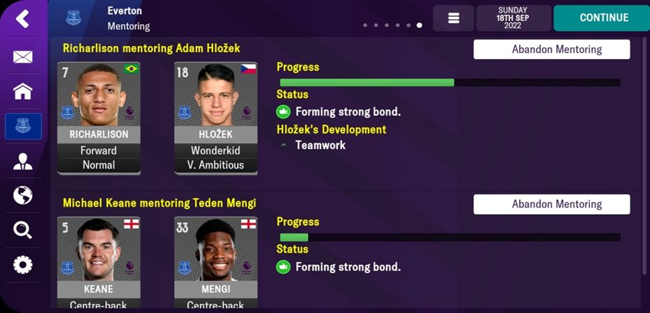 Mentoring ini merupakan menu yang di mana Anda bisa melihat Progress dari seluruh perkembangan pemain yang sedang berlatih dengan mentornya masing-masing.