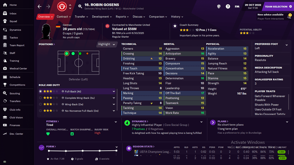 Robin Gosens saya tempatkan di posisi kiri sebagai fullback kiri. Walaupun bintanngnya Cuma tiga dan bahkan potensial ability nya juga tidak bakal bertambah mengingat umurnya sudah 2 tahun akan tetapi dia punya determinasi atau tekad yang bagus. Fullback membutuhkan itu karena kecepatan dan keputusan untuk ikut menyerang jika determinasinya tidak bagus maka akan sia-sia.