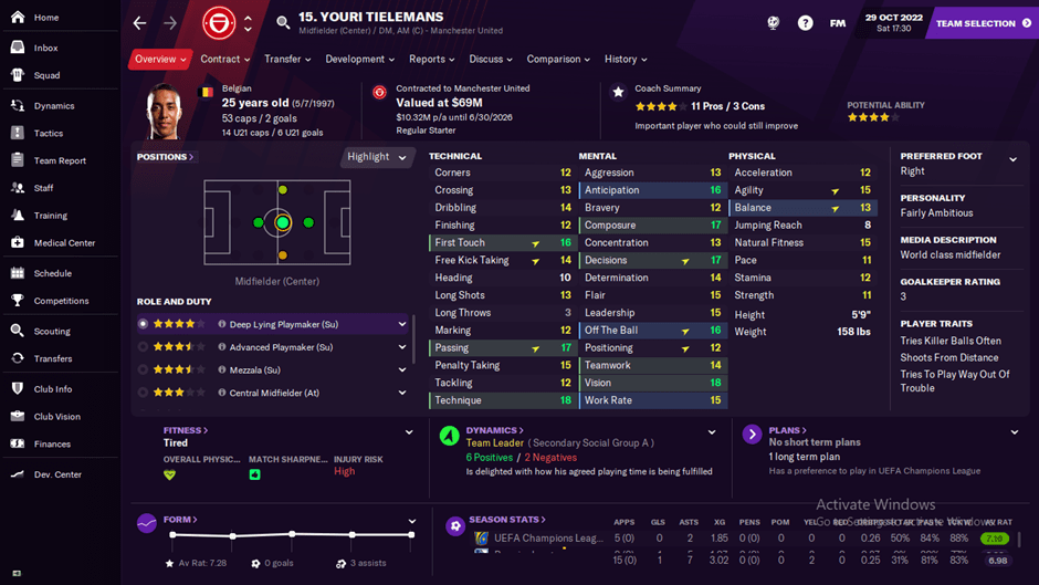 Selain itu dia punya work rate tinggi. Yang mana ini diperlukan sebagai bentuk bagaimana dia menjadi seorang yang punya daya kerja yang bagus dan akan menopang dari posisinya. Jika dilihat di traits nya terlihat dia bisa ikutan maju ketika memang diperlukan.