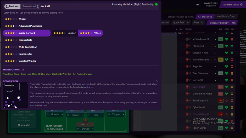 Mengapa sosok seperti Mo Salah, Sadio Mane, Riyad Mahrez hingga Vini Junior menjadi pemain dengan rating tinggi dan permainan apik. Menurut saya mereka dimainkan menjadi posisi inside forward. Inside forward adalah role dimana kita akan punya penyerang tambahan disisi flank. Jadi selain punya striker murni di tengah baik digunakan dengan plot sebagai advance forward maupun false nine maka kita punya penyerang sayap yang bisa membantu mendulang gol.