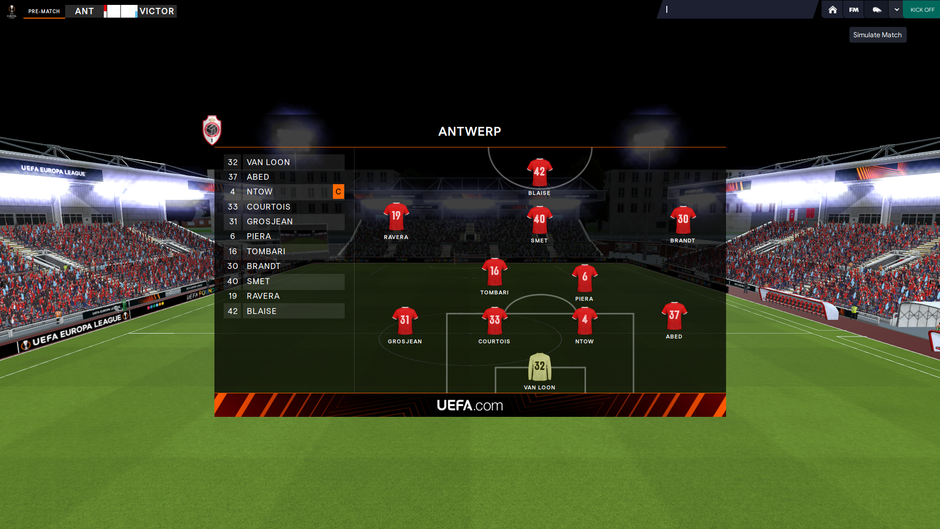 Selain itu terdapat tombil simulasi match baik sebelum pertandingan maupun saat pertandingan berjalan. Ini sangat bagus apabila di tengah pertandingan Anda buru-buru untuk mengerjakan sesuatu sehingga pertandingan bisa selesai.
