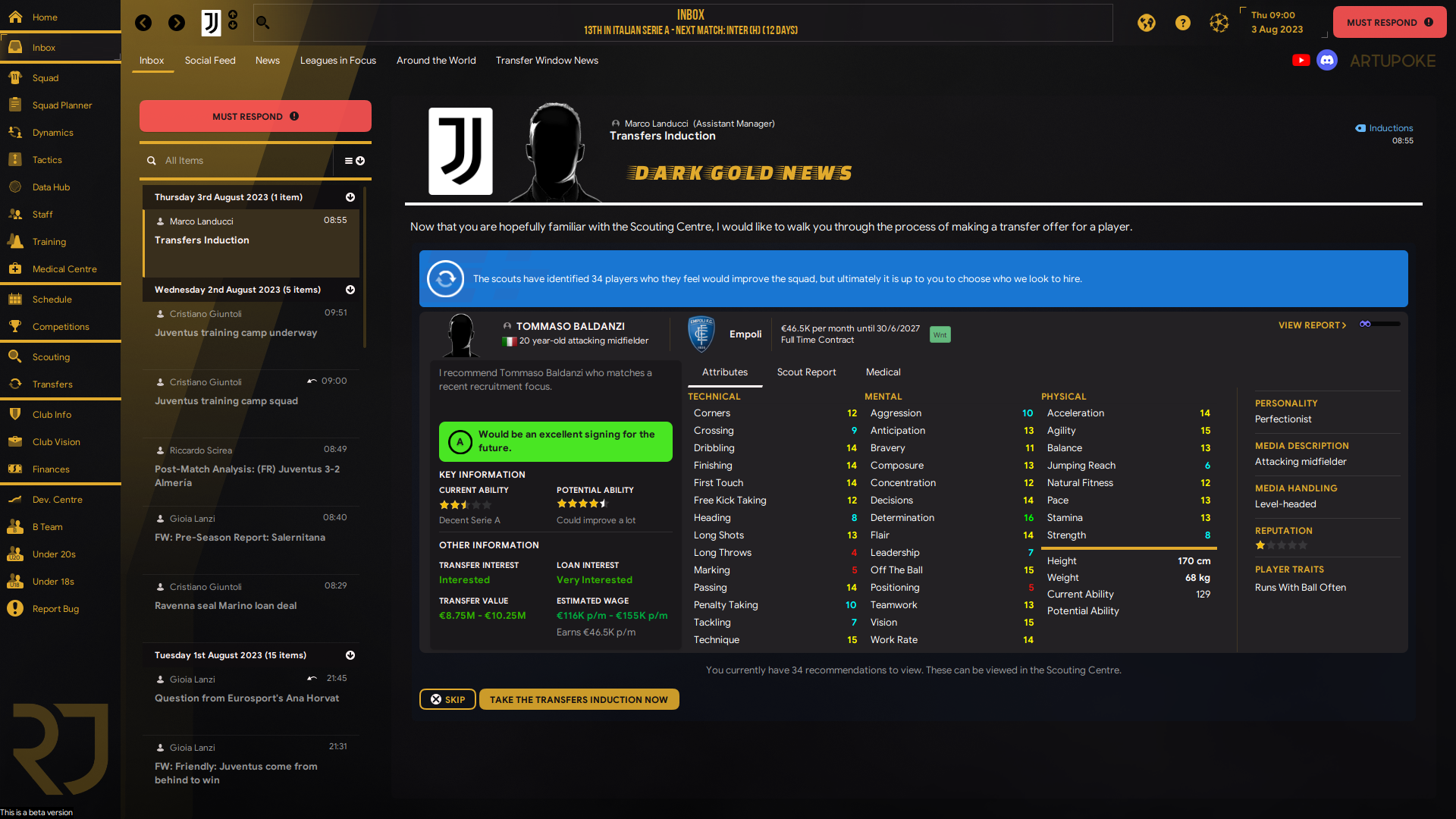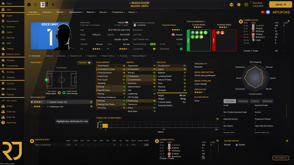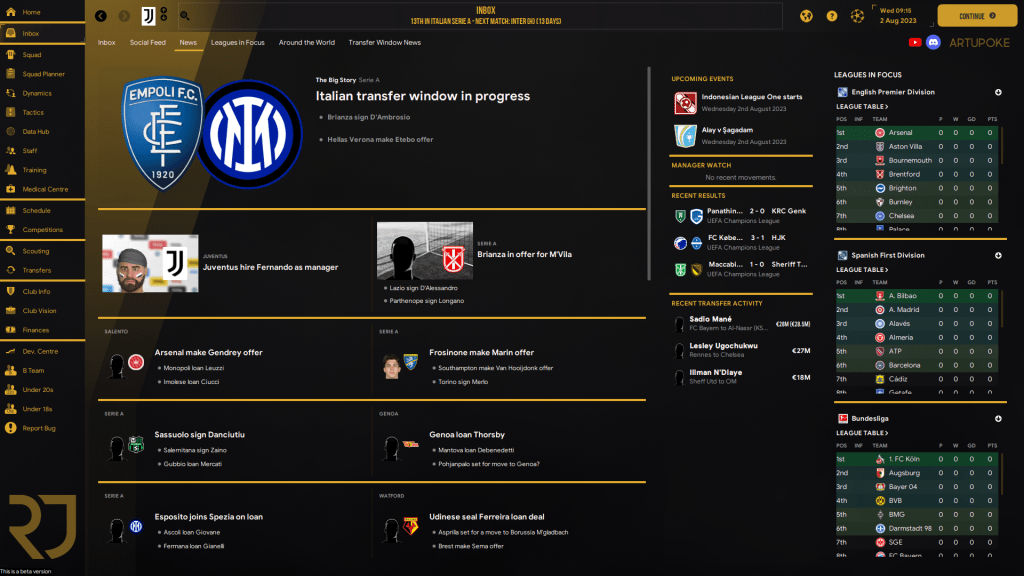 Skin ini masih Versi 1.0 Beta Akses, sehingga belum final. Meski demikian tampilan mulai dari penampilan profil manajer, profil pemain, club Info, media, sampai tampilan ui dari pertandingan mulai dari menu tactical hingga menu di laga yang seru untuk dilihat. Berikut beberapa fotonya.