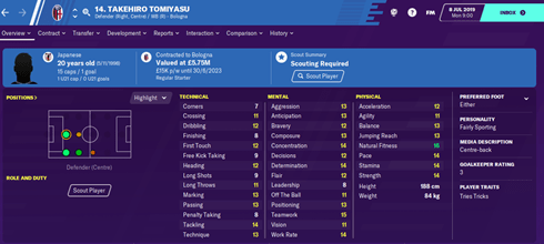 Di barisan bek tengah terdapat beberapa nama yang menarik. Untuk pilihan utama, kami menjatuhkannya kepada Takehiro Tomiyasu.