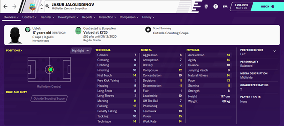 Selain Jepang dan Korea Selatan, Uzbekistan tampaknya ikut ambil bagian dalam dominasi daftar wonderkid. Di posisi ini kami merekomendasikan bintang muda Uzbekistan. Jasur Jaloliddinov.