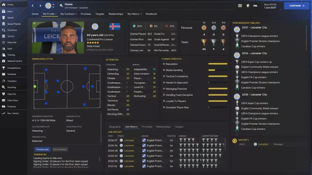 Baru-baru ini, ia berhasil membawa Leicester City juara Liga Primer Inggris enam kali beruntun. dalam waktu 600 jam bermain dan ia hanya menelan 84 kekalahan dalam 833 laga.