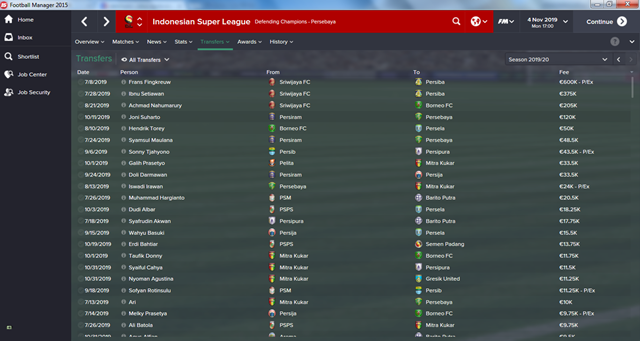 - Transfer, Apakah ada pemain asing yang masuk ke ISL dan menjadi marqueeRegen, apakah ada wonderkid yang muncul karena mungkin ada peningkatan di fasilitas training atau youth recuitment di klub ini.