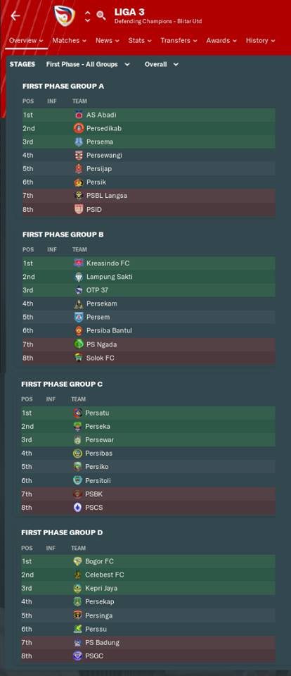 – Liga 3 (32 Tim Yang Lolos Final Liga 3 dibagi 4 grup, 6 promosi 8 degradasi)