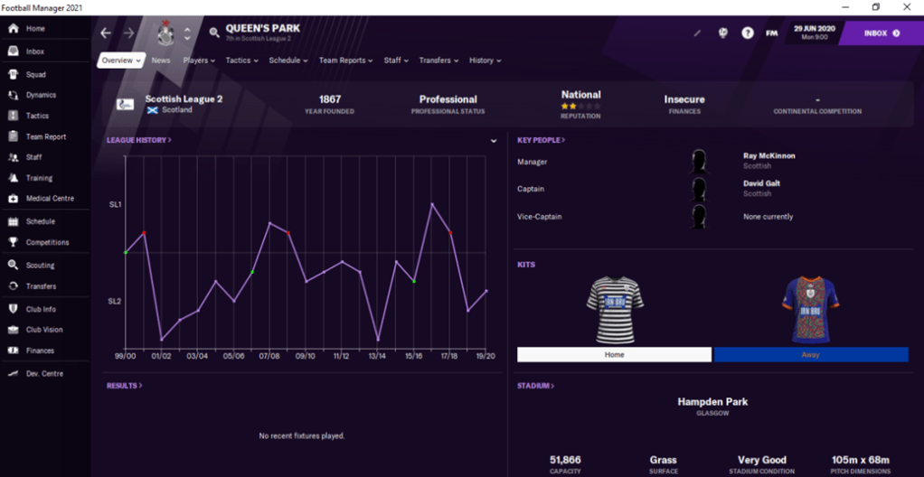 Ini dia sesepuh dari Liga Skotlandia, Queen’s Park. Dibentuk pada tahun 1867, Queen’s Park malah terdampar di divisi keempat. Klub yang sudah meraih gelar sebanyak 14 kali, membutuhkan anda yang memiliki karakter penyelamat. Jika anda tertarik untuk menyelamatkan sesepuh Liga Skotlandia ini dan bersaing dengan klub-klub lainnya di divisi teratas, maka anda akan merasakan kehormataan untuk diri anda sendiri