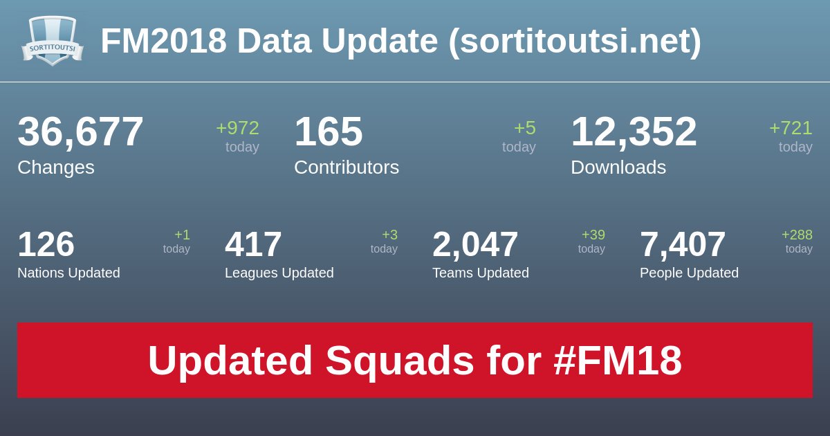 Atas nama semua orang di Sports Interactive Saya bangga untuk mengumumkan rilis dari Januari transfer data Update, 13.3.0.