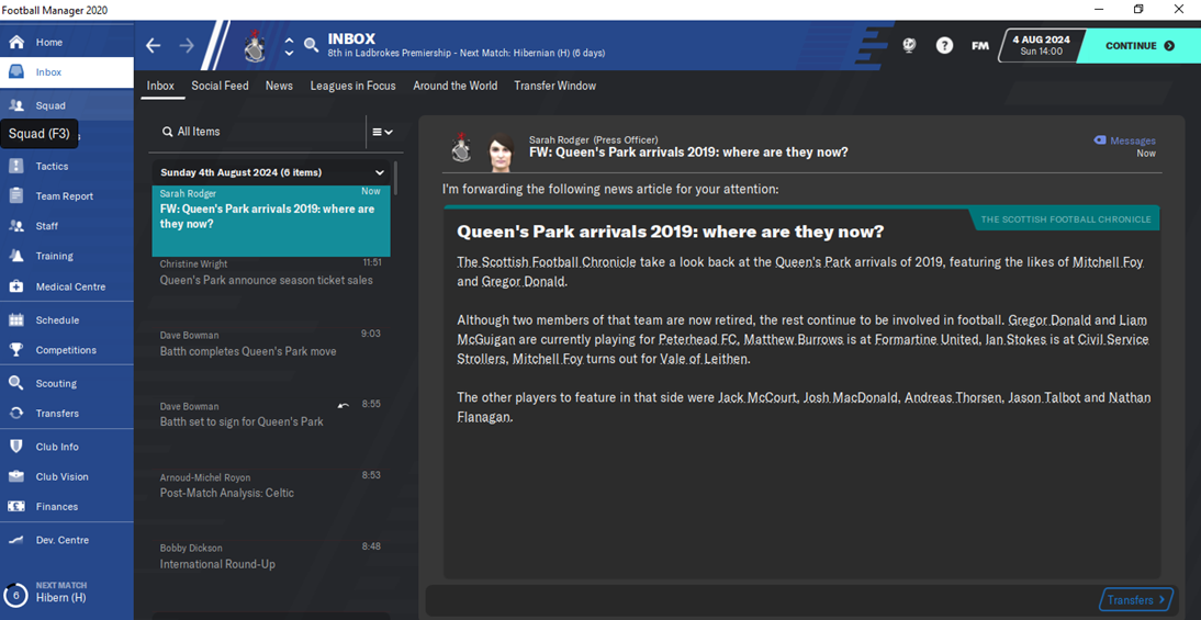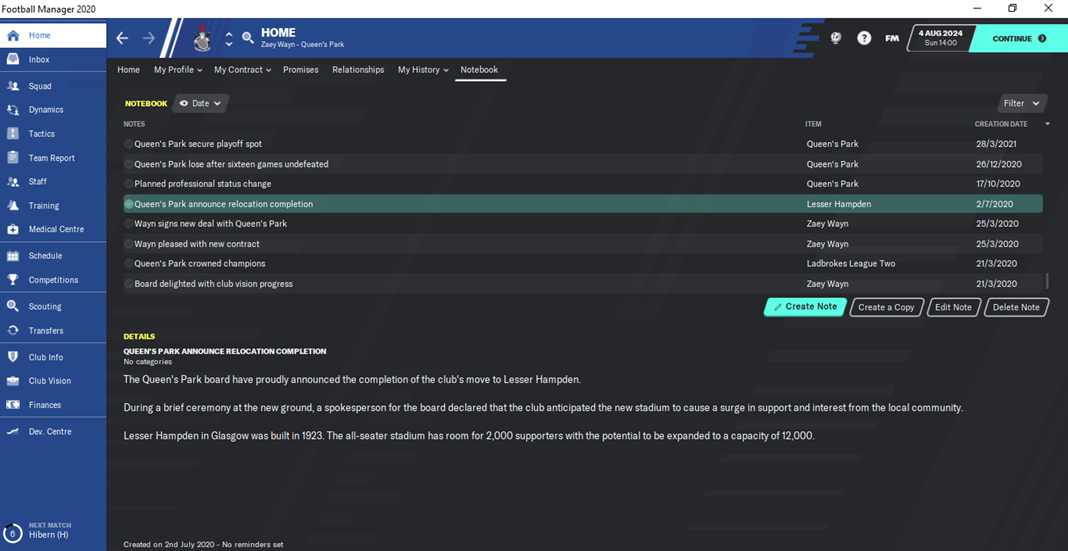 Kesan pertama saya dalam menangani Queen’s Park adalah shock berbeda dengan Football Manager Handheld 2013 yang saya mainkan, Football Manager 2020 terlalu kompleks bagi lower club. Bagaimana tidak, ketika saya bermain dengan Nuneaton Town setidaknya saya masih bisa merekrut pemain free agent tapi memiliki kontrak yang wajar, begitu pula jenis kontraknya yang hanya full contract. Namun, ketika saya bermain dengan Queen’s Park yang menyandang status semi-profesional kontrak yang bisa saya berikan hanya part-time, tidak hanya pemain tetapi juga staff tim. Tentu hal ini membuat saya bingung karena tidak bisa mengontrak pemain berbakat saya dengan jangka panjang dan hanya bisa dikontrak selama satu tahun atau 11 bulan.